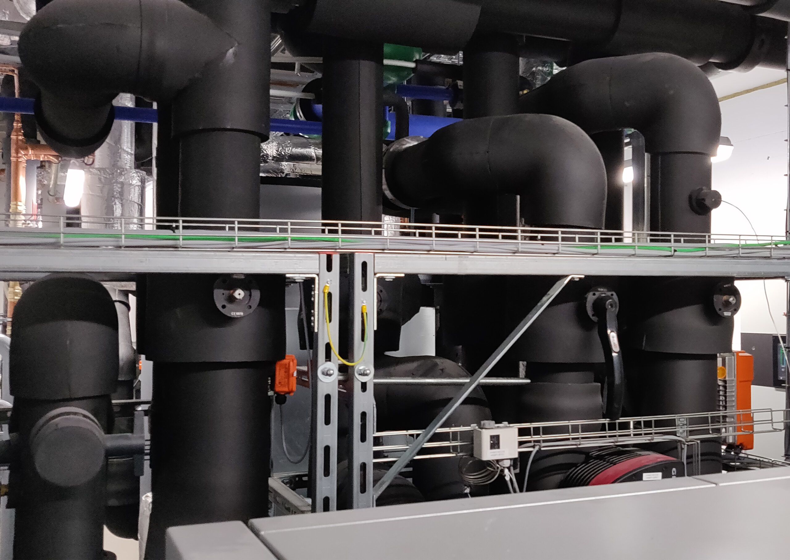 Im Jahr 2021 entstand bei der Bergischen Achsen KG (BPW) ein dreigeschossiges Bürogebäude mit insgesamt 2.100 m² Bürofläche. Hierbei wurde sehr großer Wert auf moderne, klimafreundliche und nachhaltige Technik gelegt. Das Projekt umfasst eine Viessmann Sole-Wärmepumpe Vitocal 300-G-Pro mit 140 kW Leistung, einen Eis-Energiespeicher mit rund 350.000 Litern Fassungsvermögen sowie 43 Solar-Luft-Kollektoren mit einer Gesamtlänge von ca. 26 Kilometern Entzugsrohr. Es galt, diese beiden Energiequellen effizient zu managen, um somit einen hohen Wirkungsgrad sowie Wirtschaftlichkeit des Systems zu garantieren. Über die Temperierung des Gebäudes hinaus, sollte die Anlagentechnik auch entsprechende Kühlleistung für die Server bereitstellen. In Kooperation mit der Metternich Haustechnik GmbH wurden hier die hydraulischen Unterstützungseinheiten von B.E.-Cologne verbaut. Abgestimmt auf die Vitocal 300-G-Pro mit 140 kW Leistung kam die HSU-140 zum Einsatz.